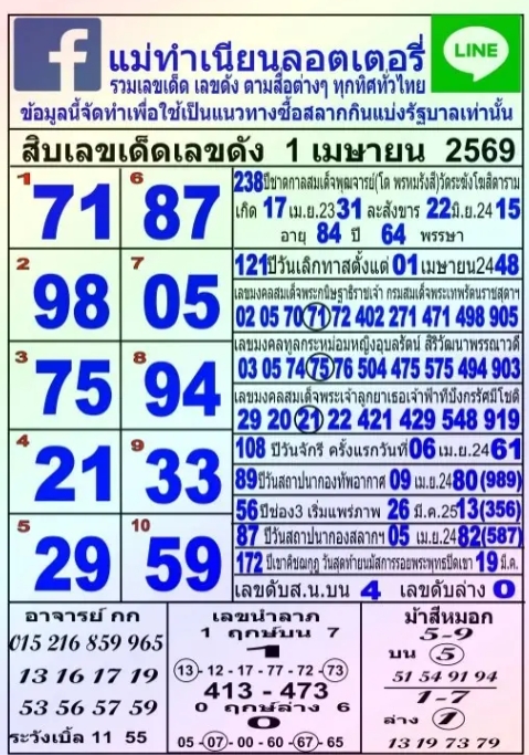 รวมแนวทางหวยรัฐบาล งวดวันที่ 1 เมษายน 2569 เจ้าพ่อ เจ้าแม่ จากสำนักดัง
