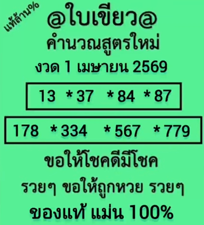 ต้องดู! รวมหวยซองปกเขียว 1/4/2569