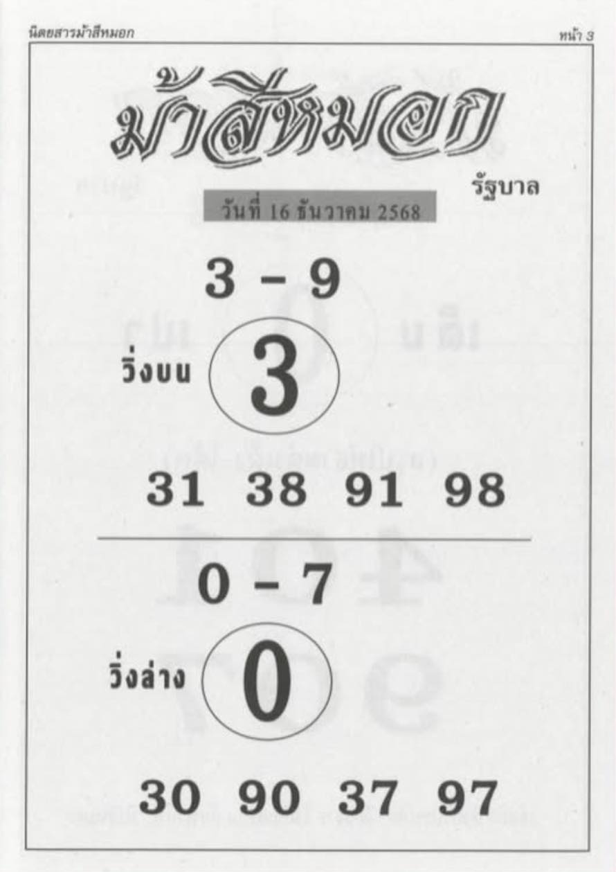 ตาม! หวยม้าสีหมอก 16/12/2568
