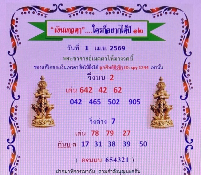 ลุ้น! หวยเงินเทวดา 1/4/2569
