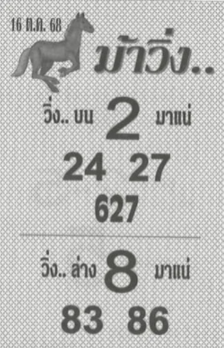 เป็นหวยซองที่มีความโด่งดังมานาน ซึ่ง หวยม้าวิ่ง คือหวยซองทำมือ ที่มีความแม่นยำเป็นอย่างมาก จึงเป็นที่สนใจสำหรับคอหวยหลายๆ คน ที่ตั้งหน้าตั้งตารอนำเลขบ้านไผ่เมืองพล ไปเสี่ยงโชค ลุ้นโชคกันเป็นอย่างล้นหลาม ทั้งนี้ยังคงให้ความแม่นยำเสมอมา ให้ถูกติดต่อมาหลายงวดแล้วเช่นกัน