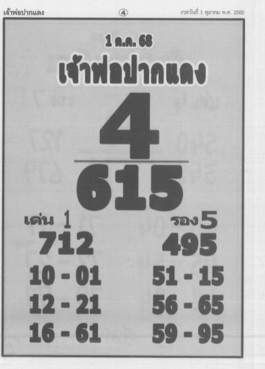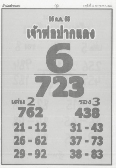 หวยเจ้าพ่อปากแดง 16/10/2568