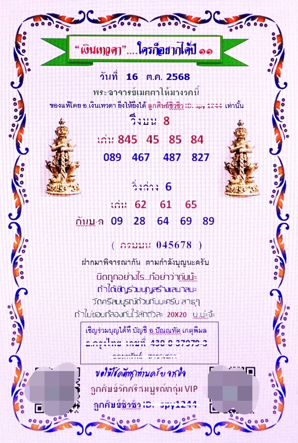 ลุ้น! หวยเงินเทวดา 16/10/2568